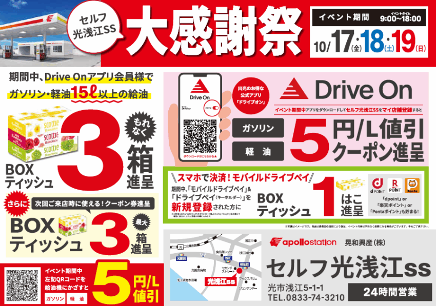 この度、晃和興産㈱セルフ光浅江SSは、日頃の感謝を込めて『大感謝祭』を開催いたします!!
