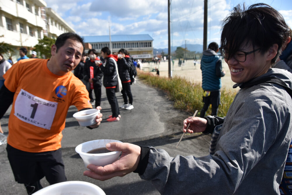 無事、皆が走り終わった後は、大会側より温かいぜんざいを用意して頂き、駅伝の感想などを話し合い楽しい時間になりました。