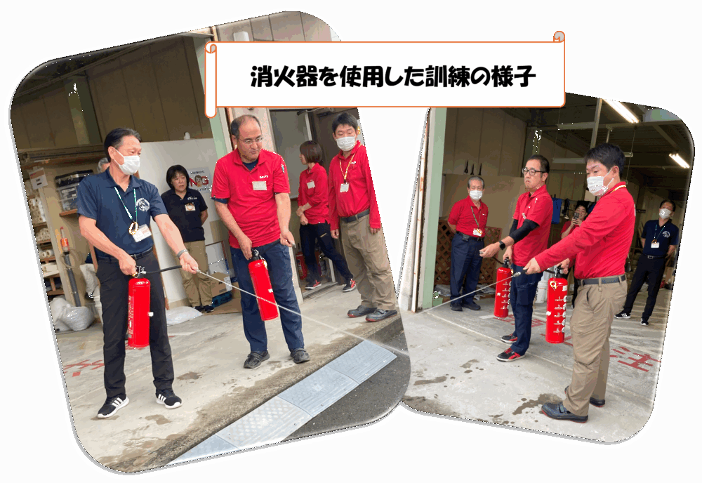 避難訓練の後は、実際に水消火器を使用して消火訓練を行いました。