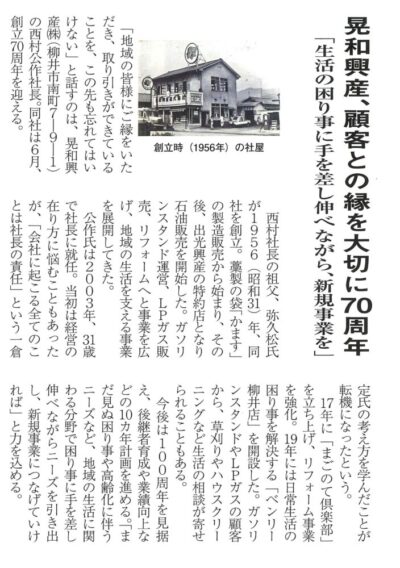 晃和興産株式会社 『創立70周年』のお知らせ